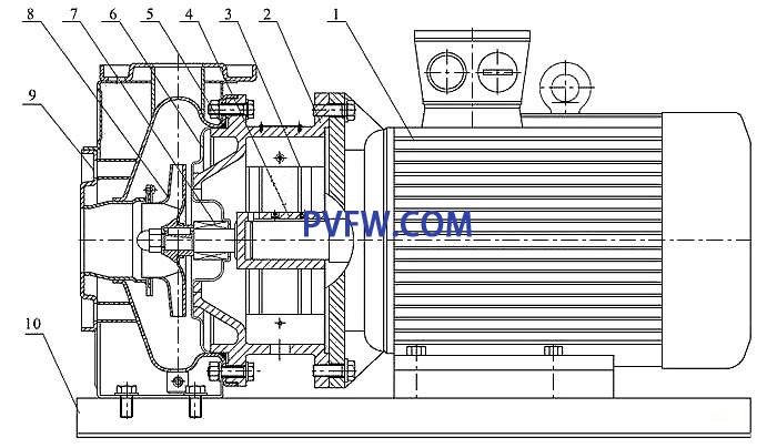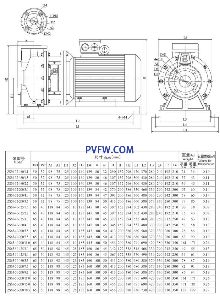 ZS型不锈钢卧式单级离心泵为泵轴直联型联结,由泵、泵轴和标准电机组成: