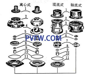水泵部分:位于潜水泵上部,与电动机同轴,其叶轮形式有离心式混流式和轴流式三种。